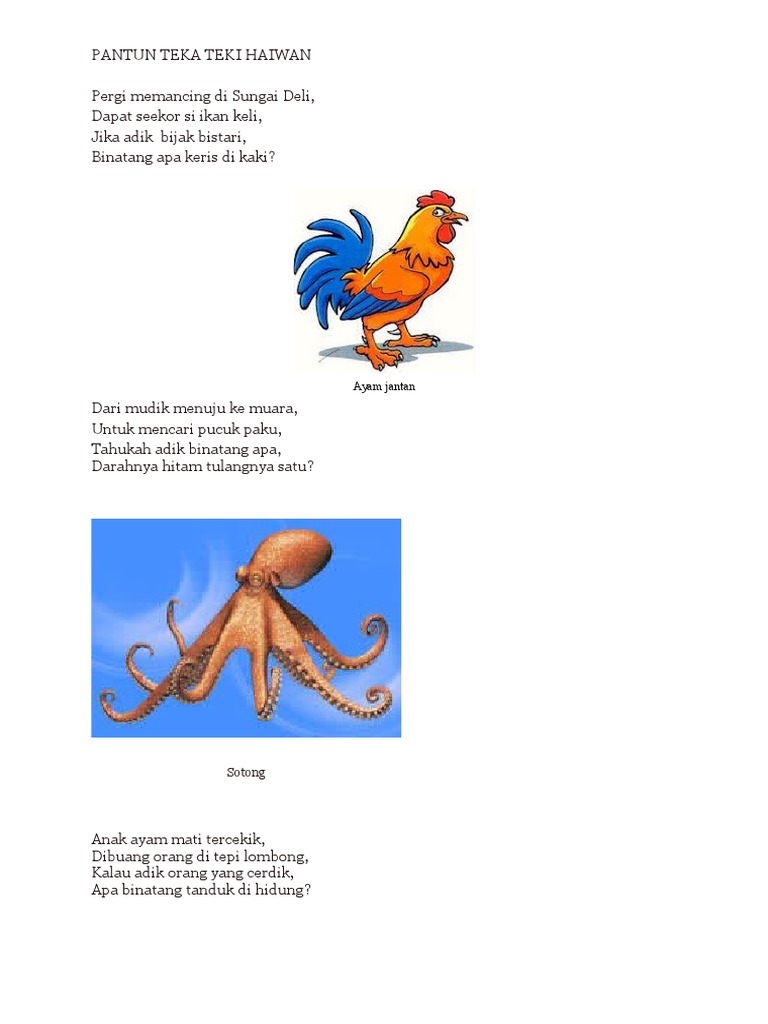 Pantun ini sebagai pengingat atau pencegahan untuk kita semua. 1382009 Pantun Teka Teki 03 Binatang 10 rangkap pantun teka-teki yang berkisar tentang binatang. Pantun Nasehat Belajar Pantun ini berkaitan dengan pantun nasehat pendidikan.
